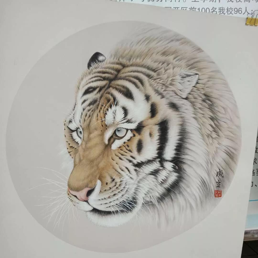 參展的書法種類齊全,形式多樣,筆力非凡;繪畫或?qū)憣?shí),或會(huì)意,或濃墨重彩,或輕描淡寫,多姿多彩,靈動(dòng)雅致。師生們筆走龍蛇,謳歌盛世,不忘初心;墨顯精神,點(diǎn)贊和諧,放飛夢(mèng)想。