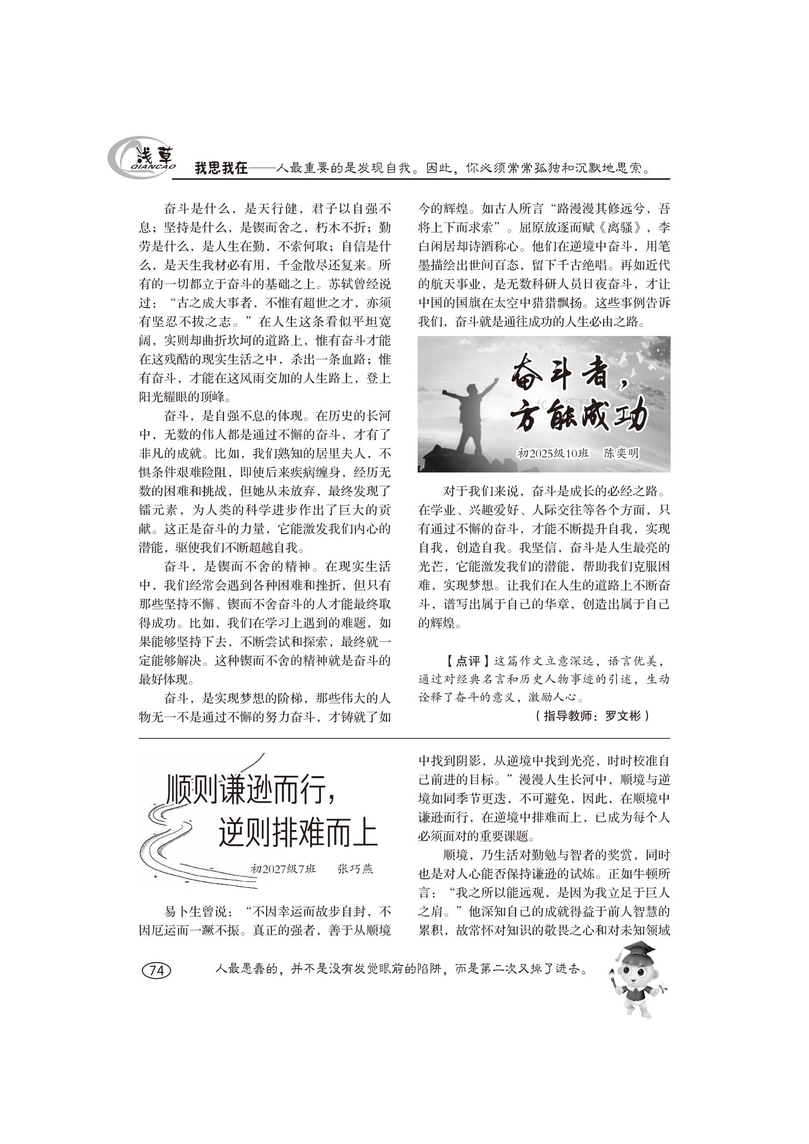 奮斗者,方能成功;順則謙遜而行,逆則排難而上