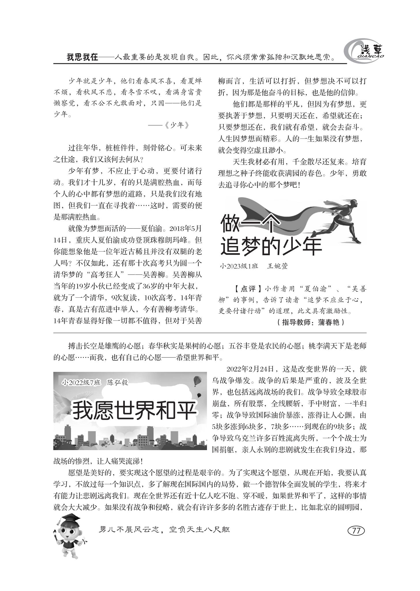 做一個追夢的少年;我愿世界和平