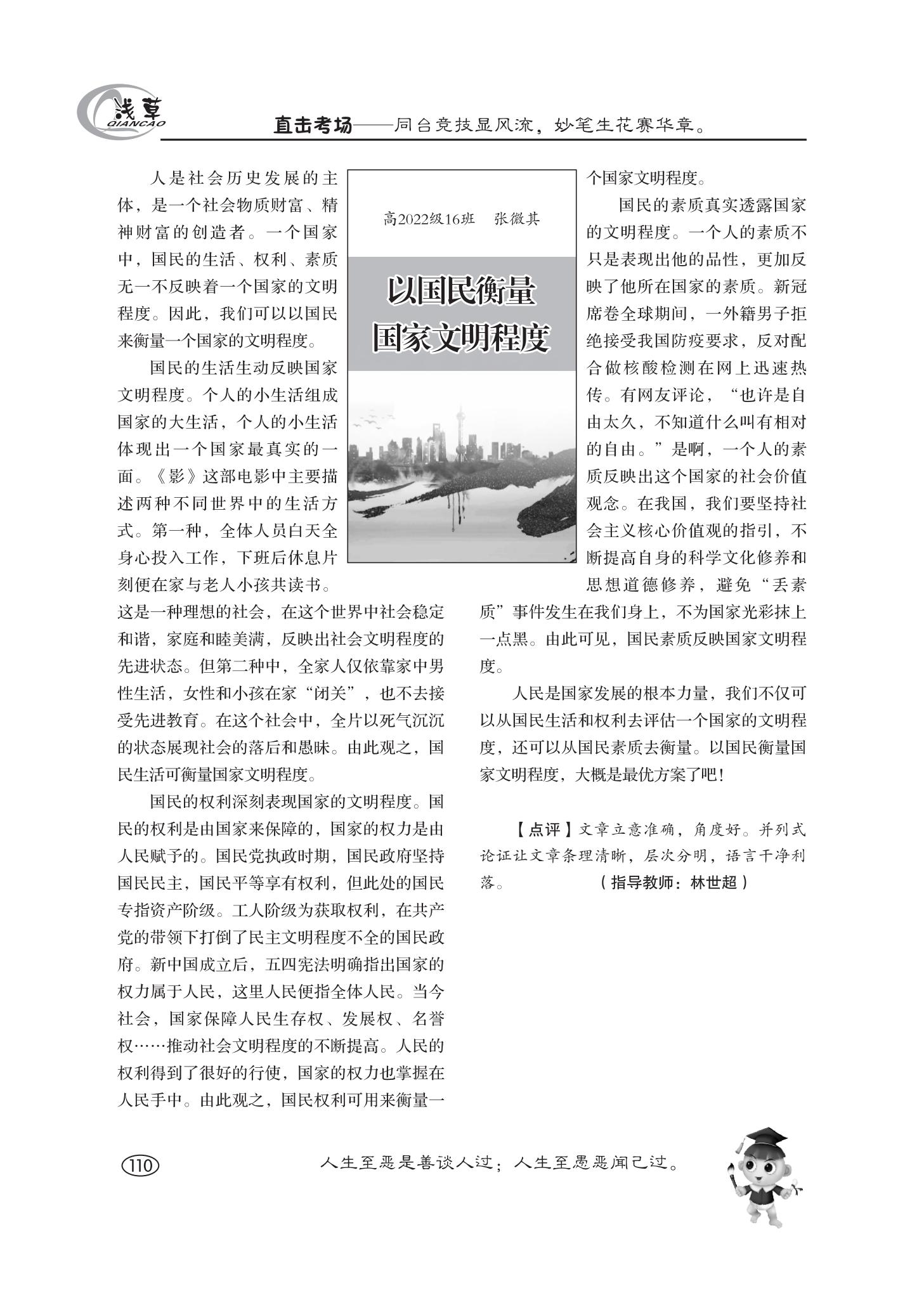 以國(guó)民衡量國(guó)家文明程度
