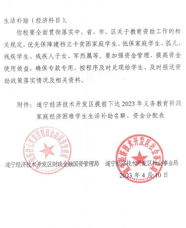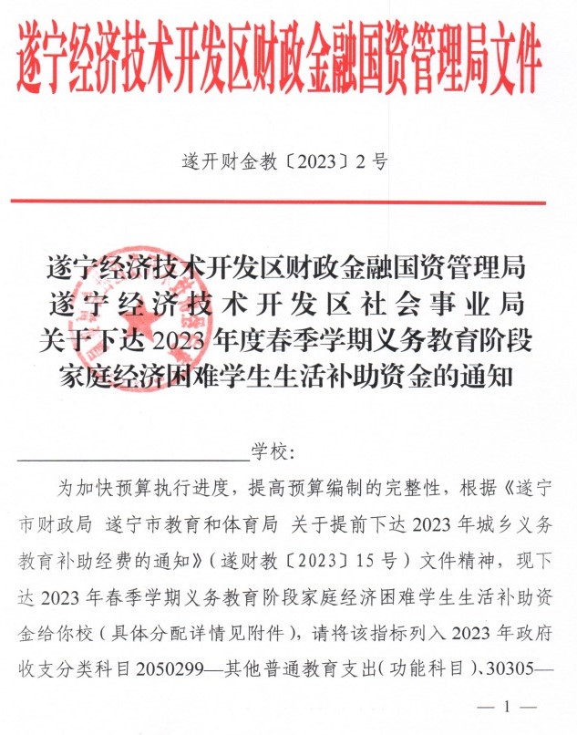 關(guān)于下達(dá)2023年度春季學(xué)期義務(wù)教育階段家庭經(jīng)濟(jì)困難學(xué)生生活補(bǔ)助資金的通知