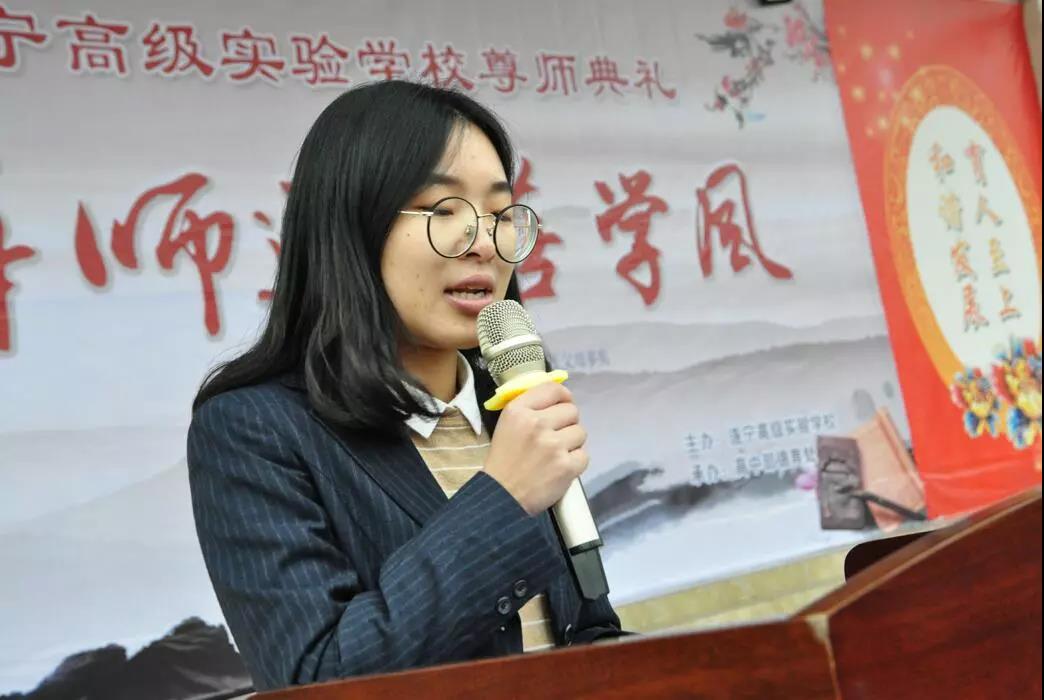 “當(dāng)我們從懵懂中走來,蹣跚地沿著知識的階梯拾級而上的時候,總有人在身旁牽引著我們的手,那就是您,親愛的老師?!睂W(xué)生代表周芷珊以《感恩老師》為題,用自己的切身體會向在場的同窗們講述著:老師的認(rèn)真、老師的勤奮、老師的付出、老師的苦惱、老師的辛酸。