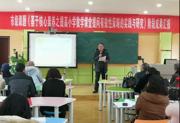 遂寧高級實驗學(xué)校長期以來秉承“科研強校,科研興?!钡慕逃谥?,高度重視科研工作,以研促學(xué),以研促教,以研促考。2018年12月14日,學(xué)校隆重舉行了市級課題《基于核心素養(yǎng)之提高小學(xué)數(shù)學(xué)課堂提問有效性策略的實踐與研究》階段成果匯報活動,此次活動由小學(xué)部教科室副主任李琳主持。蒞臨現(xiàn)場的領(lǐng)導(dǎo)有遂寧市教育科研所副所長殷紅斌,國開區(qū)社會事業(yè)局文教體科長袁衛(wèi)東,遂寧高級實驗學(xué)校校長羅爽,遂寧高級實驗學(xué)校黨總支書記、外國語學(xué)校校長羅光友,副校長漆斌、張曉敏,小學(xué)部主任廖曉芳等。參加活動的還有遂寧高級實驗學(xué)校外國語學(xué)校小學(xué)部全體數(shù)學(xué)教師和國開區(qū)兄弟學(xué)校的老師們。