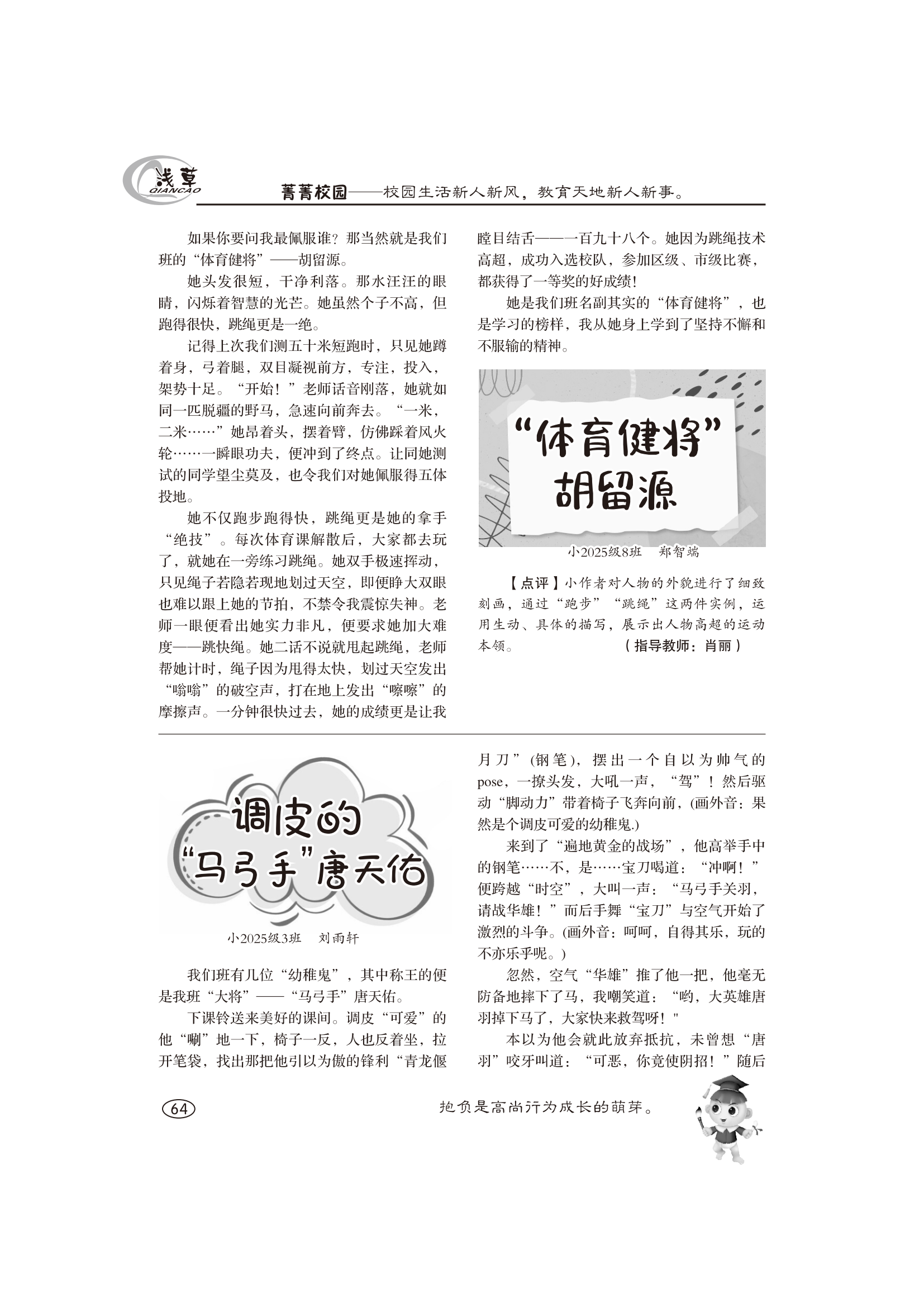 “體育健將”胡留源;調(diào)皮的“馬弓手”唐天佑