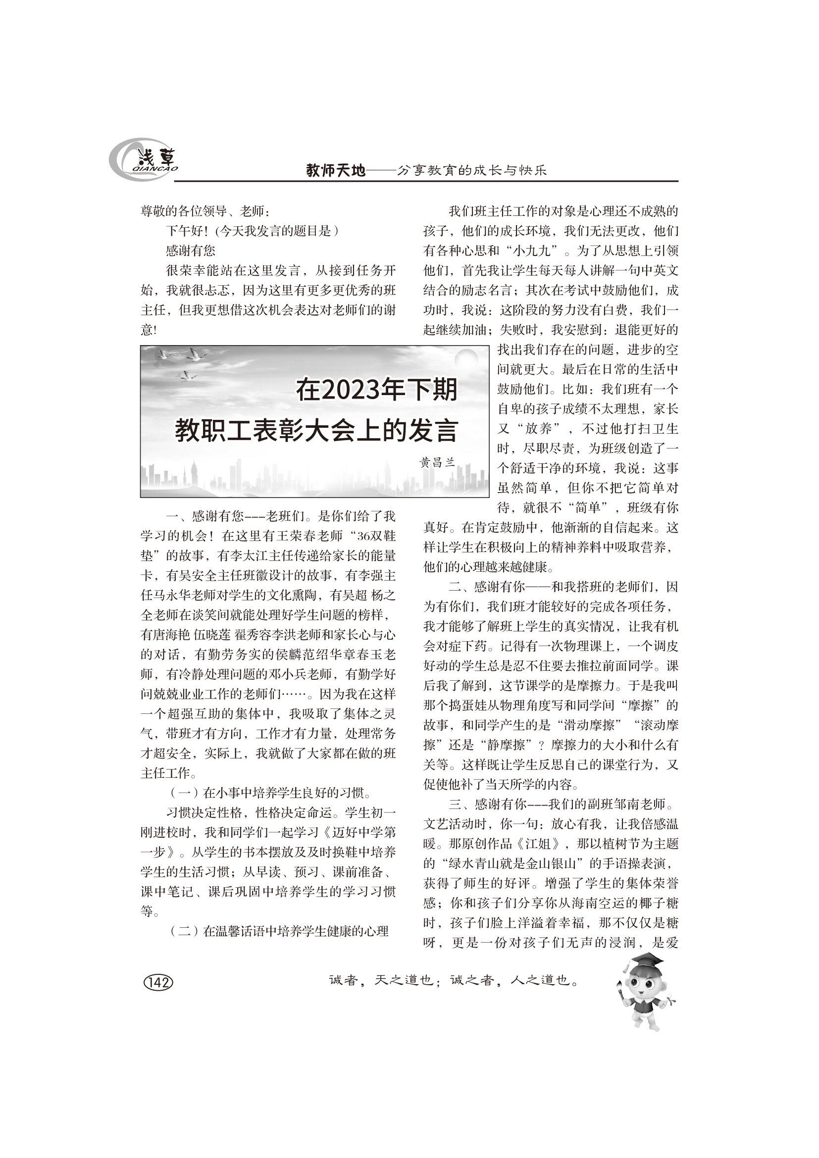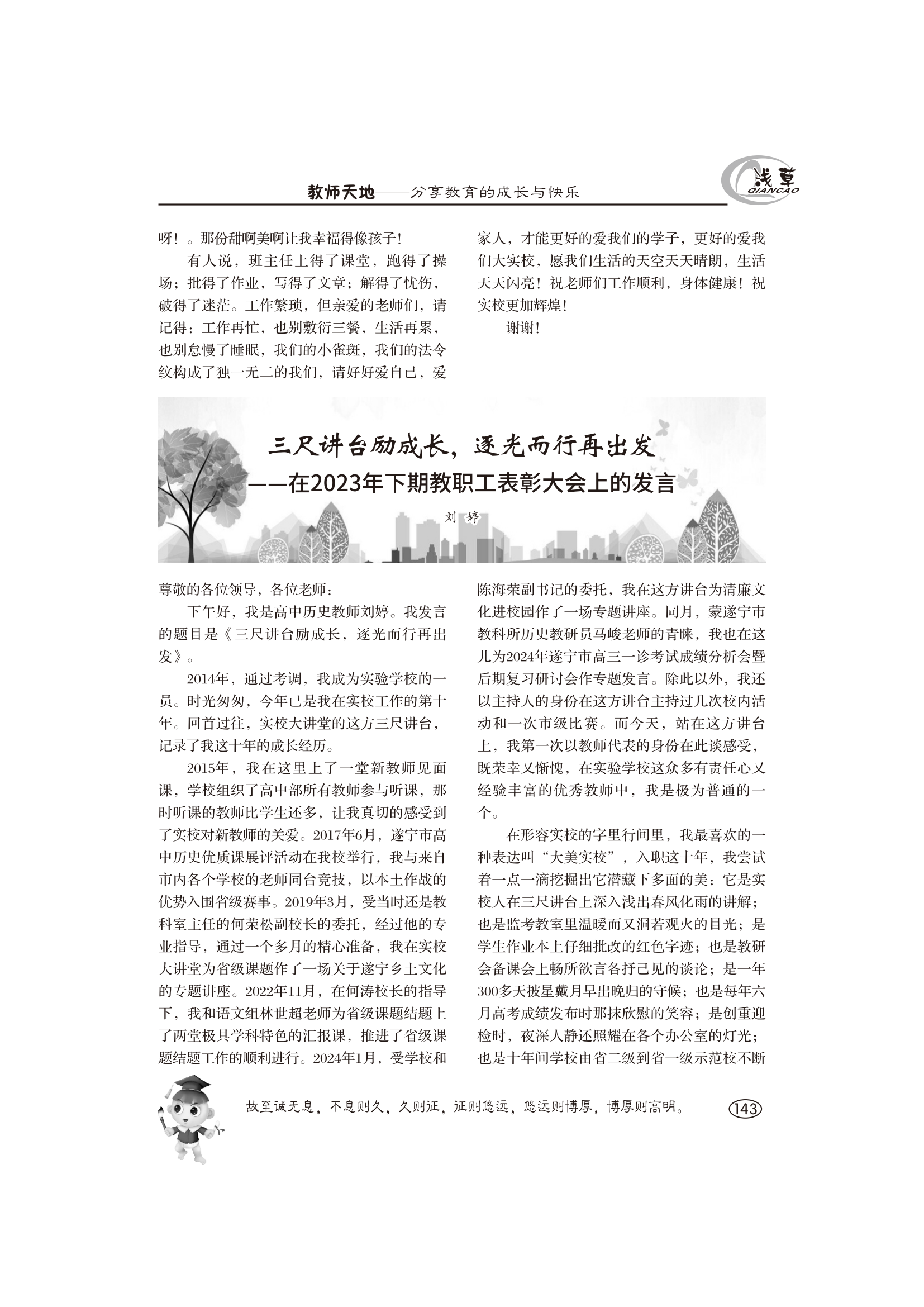 在2023年下期教職工表彰大會上的發(fā)言