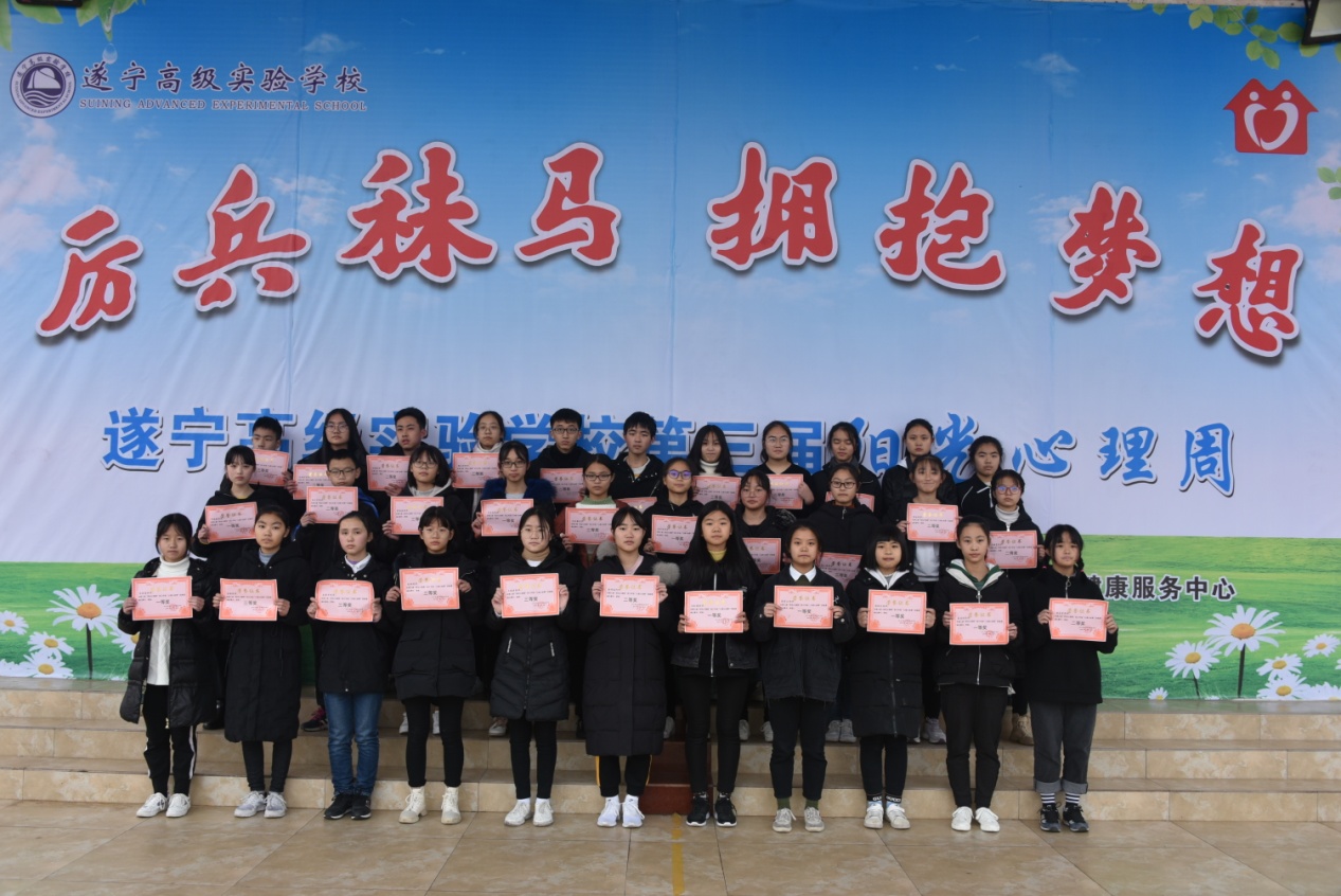 為加強(qiáng)學(xué)校心理健康教育工作,積極營(yíng)造關(guān)愛學(xué)生心理健康、創(chuàng)建和諧校園的良好氛圍,遂寧高級(jí)實(shí)驗(yàn)學(xué)校開展了一年一度的陽(yáng)光心理活動(dòng)周,12月9日在第三屆陽(yáng)光心理周開幕式上學(xué)校黨委書記、校長(zhǎng)羅爽送上祝福:“ 我希望你們懷揣夢(mèng)想、厲兵秣馬,去邂逅未來最藍(lán)的大海,最美的陽(yáng)光;我希望你們不辜負(fù)最單純的流年,最自由的韶華,最優(yōu)秀的自己!”