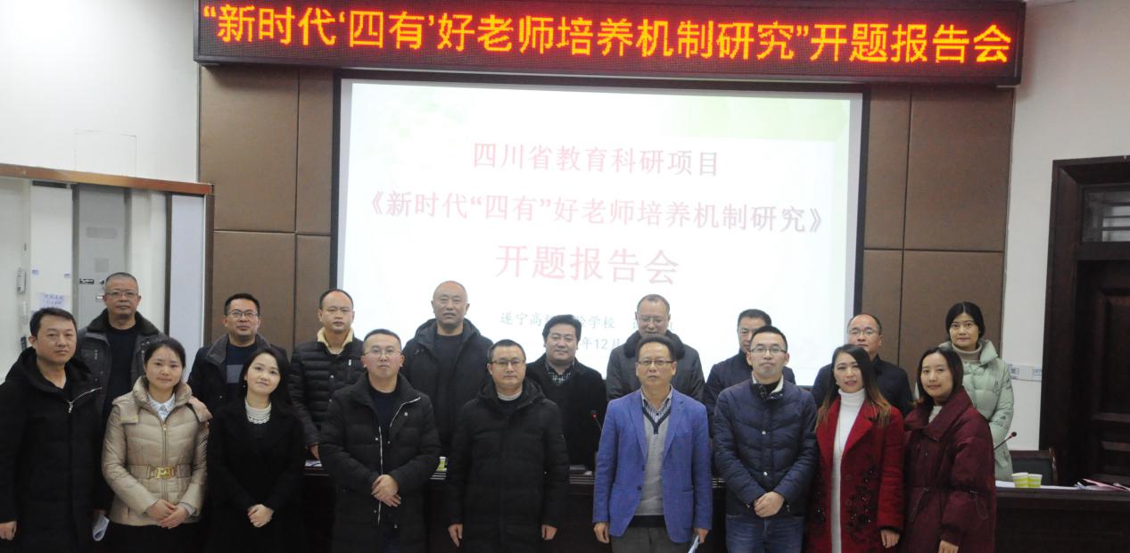 12月18上午,四川省教育廳下達(dá)的2019年度“四川省哲學(xué)社會科學(xué)重點(diǎn)研究基地”“四川省高校人文社會科學(xué)重點(diǎn)研究基地”“四川省中小學(xué)教師師德研究中心”教育科學(xué)研究課題《新時(shí)代“四有”好老師培養(yǎng)機(jī)制研究》開題報(bào)告會在遂寧高級實(shí)驗(yàn)學(xué)校外國語學(xué)校學(xué)術(shù)報(bào)告廳舉行。